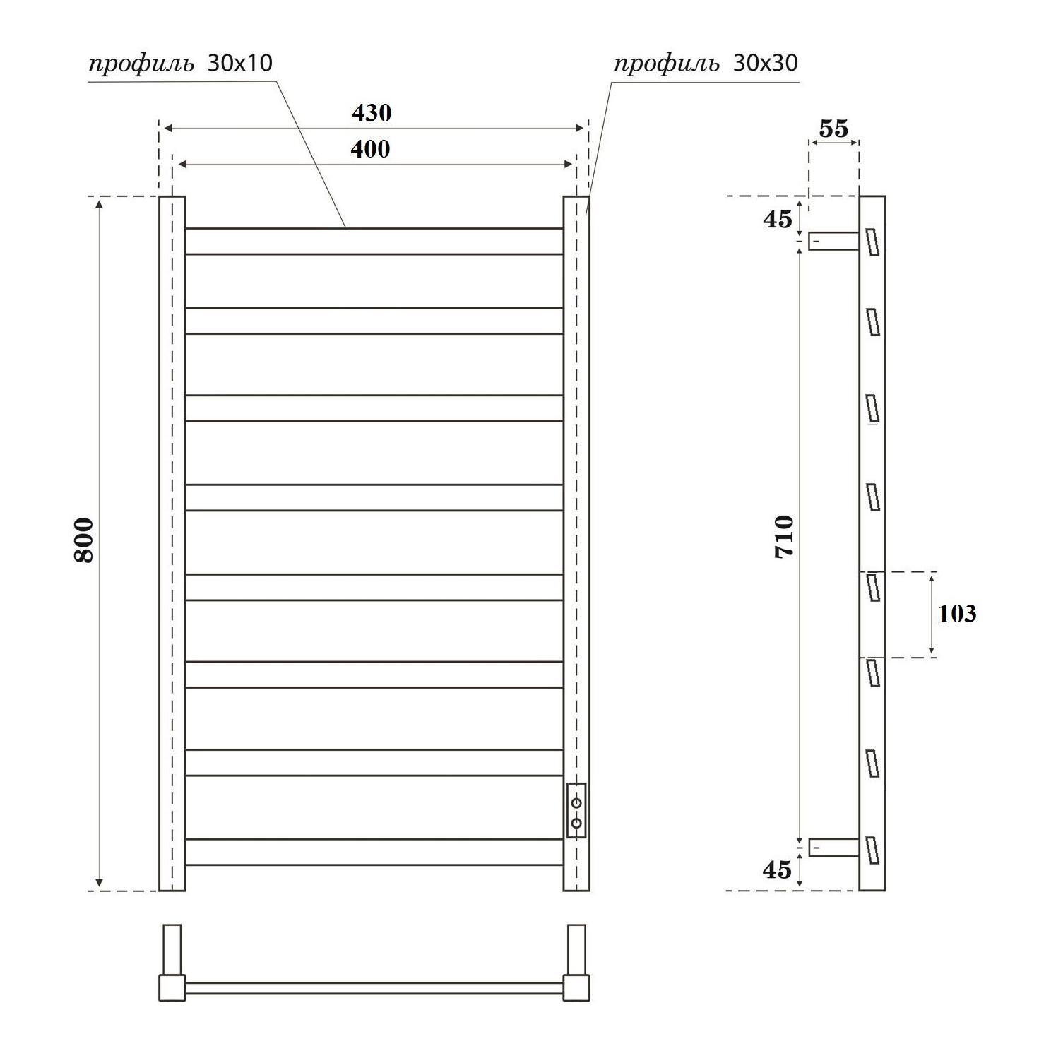 Полотенцесушитель электрический APEXTERMO Galaxy GL00164WM 600x400 белый матовый