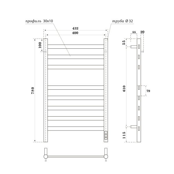 Полотенцесушитель электрический APEXTERMO Sfera SF10184BM 800x400 с крючками черный матовый
