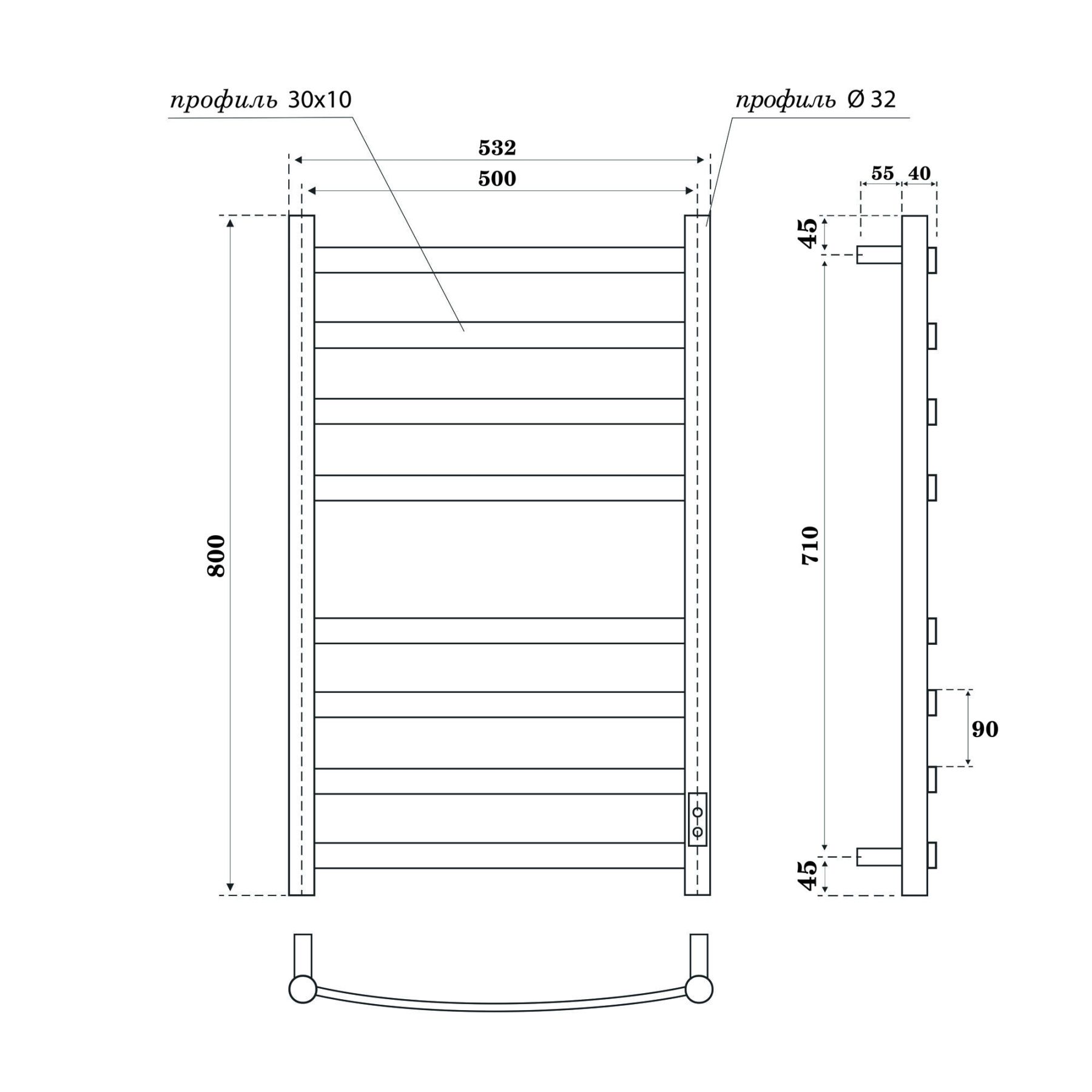 Полотенцесушитель электрический APEXTERMO Umbra UM00185BM 800x500 черный матовый