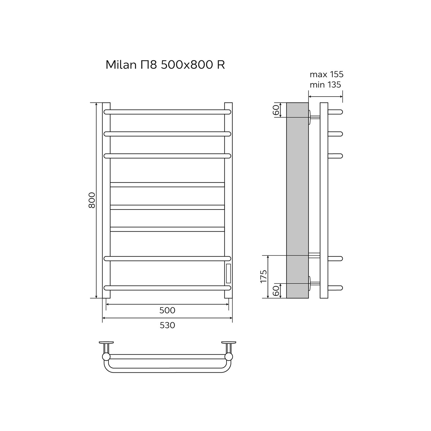 Полотенцесушитель электрический AZARIO MILAN AZ90858B 500/800 8 секций, диммер справа, черный купить