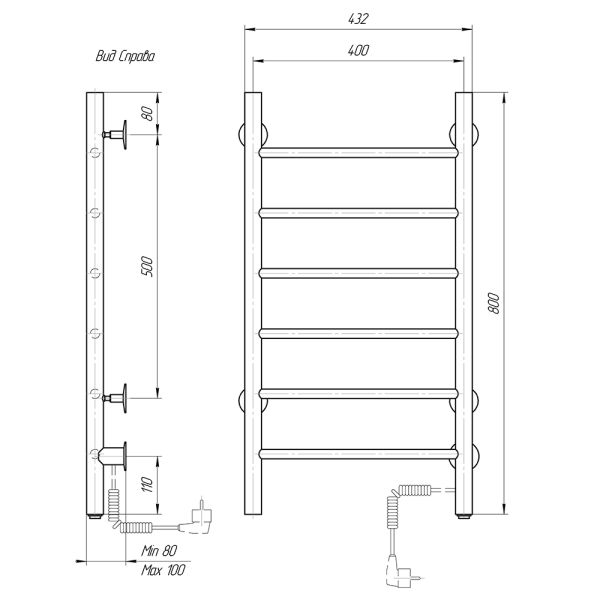 М/о расстояние (межосевое расстояние): 400Количество перекладин: 6Коллекция: АврораТип: электрическиеЦвет: белыйМощность, Вт: 53Ширина (мм): 432Высота (мм): 800Глубина (мм): 80-100Вес: 4,42Объем: 0,0495Тэн/подключение: справаСтрана: РоссияГарантия: 2 года