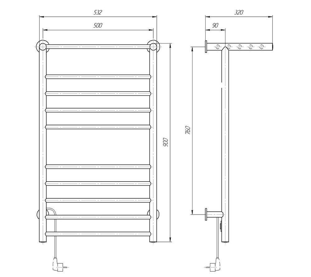 Количество перекладин: 10Коллекция: Аврора с полкойТип: электрическиеЦвет: хромМощность, Вт: 130Ширина (мм): 500Высота (мм): 900Глубина (мм): 310Вес: 4,65Объем: 0,165Тэн/подключение: слеваСтрана: РоссияГарантия: 2 года