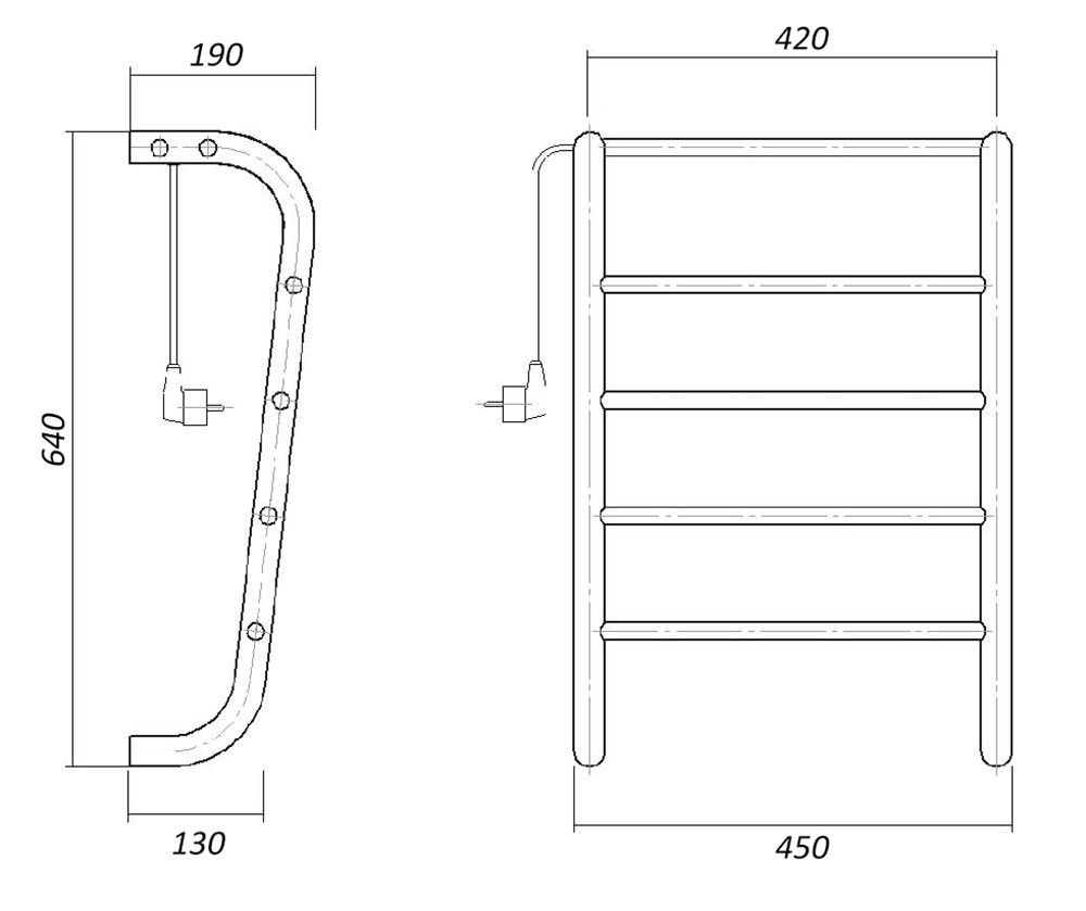 Количество перекладин: 6Коллекция: БолероТип: электрическиеЦвет: хромМощность, Вт: 50Ширина (мм): 450Высота (мм): 660Глубина (мм): 190-130Вес: 2.1Объем: 0.066Тэн/подключение: справаСтрана: РоссияГарантия: 2 года