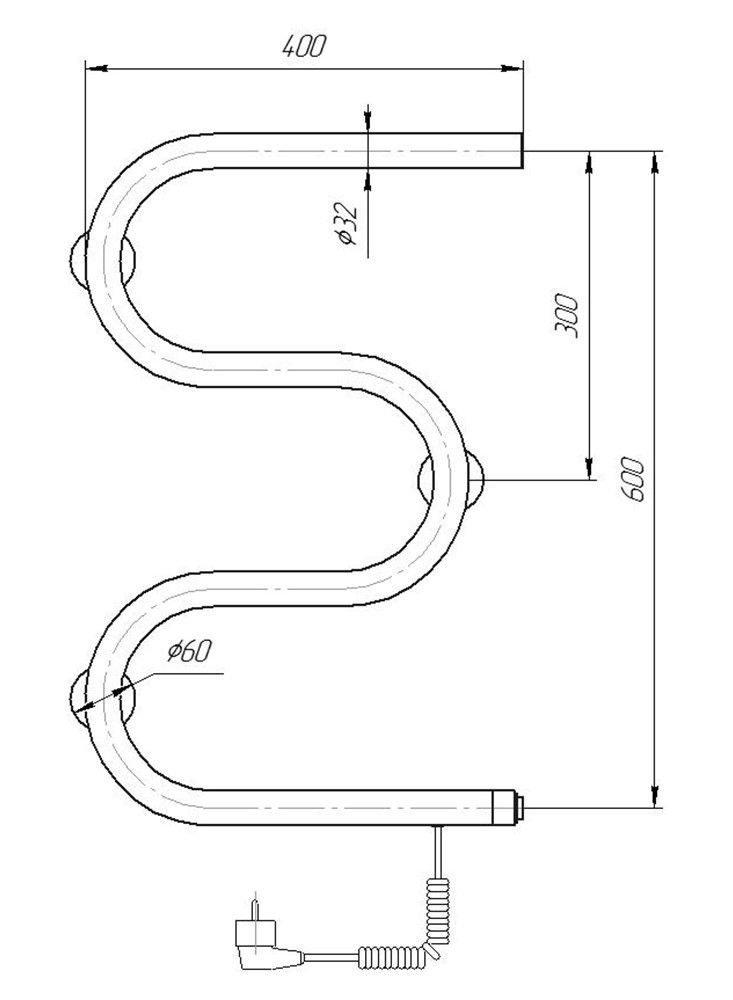 Электрический полотенцесушитель М-образный из нержавеющей стали.