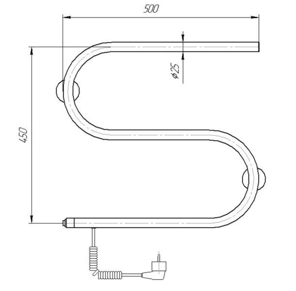 Электрический полотенцесушитель S-образный из нержавеющей стали.