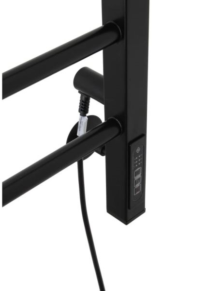Электрический полотенцесушитель с сухим кабелем представляет собой современный обогревательный электроприбор из конструкционной стали черном в цвете.Есть возможность скрытого подключения.Устройство потребляет небольшое количество электроэнергии и может работать на протяжении длительного периода времени без отключения от сети; является дополнительным источником отопления в комнате, можно использовать в ванных комнатах для сушки белья, полотенец.
