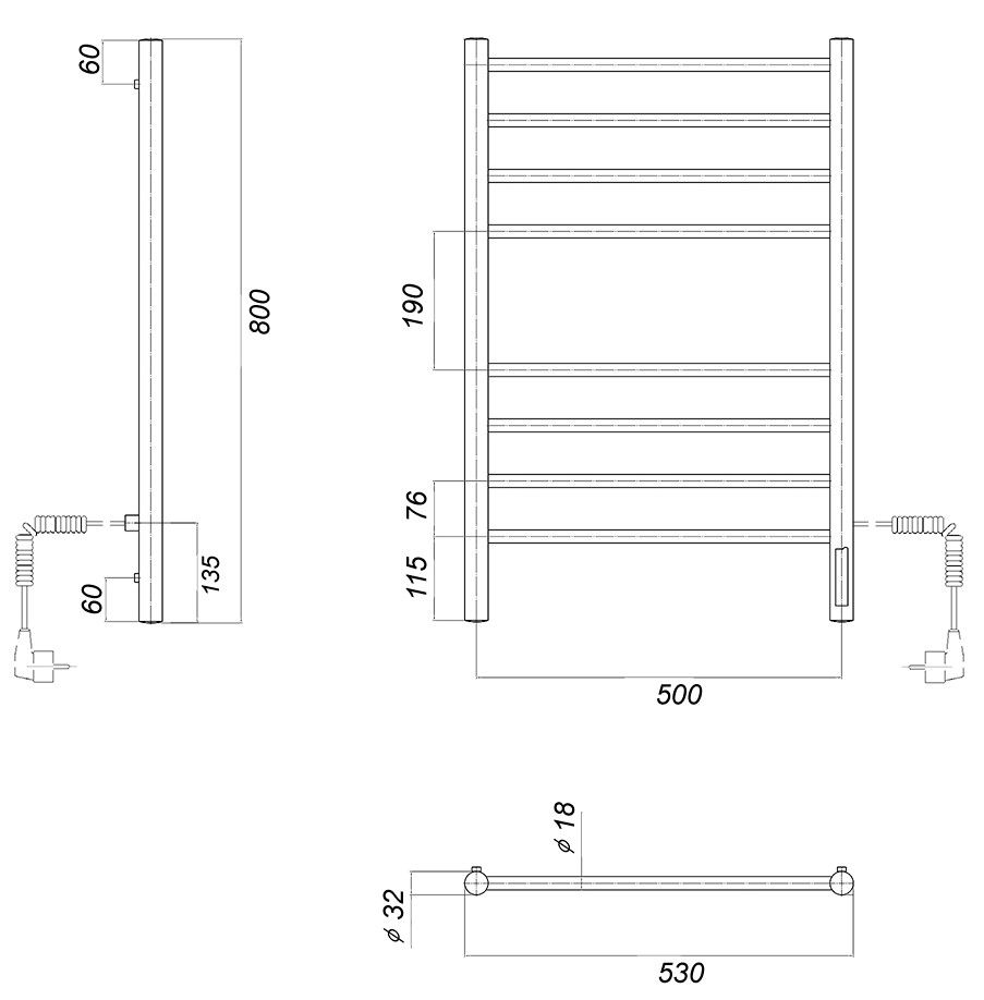 М/о расстояние (межосевое расстояние): 500Количество перекладин: 8Коллекция: МедеяТип: электрическиеЦвет: белыйМощность, Вт: 110Ширина (мм): 532Высота (мм): 800Глубина (мм): 83-93Вес: 5,85Объем: 0,04Тэн/подключение: справаСтрана: РоссияГарантия: 2 года