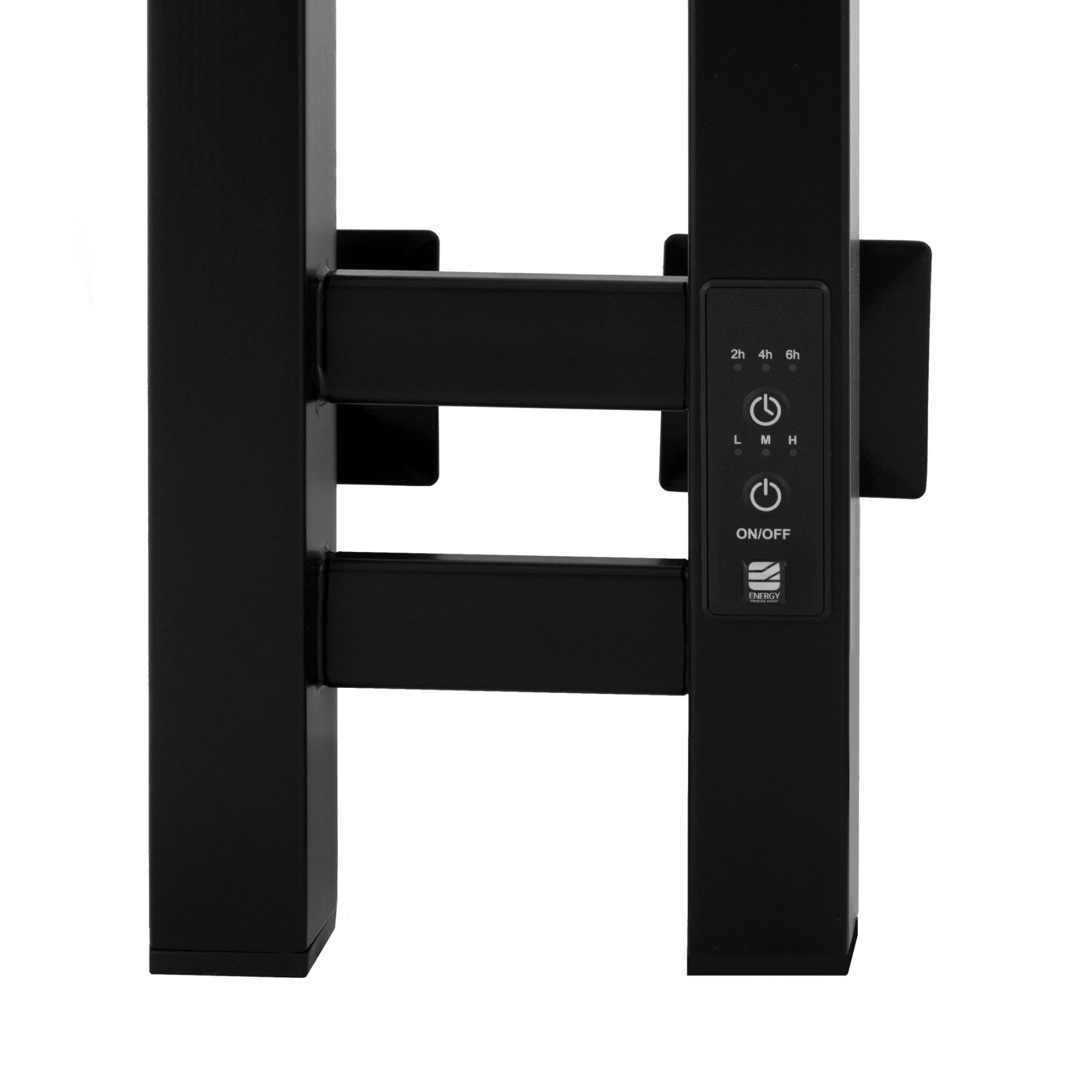 Energy Dart – узкий электрический полотенцесушитель-лесенка с терморегулятором и таймером. Нагревается за счет безопасного греющего кабеля в изоляции. Отличительная особенность модели – форма труб: вертикальные трубы имеют квадратное сечение, горизонтальные - прямоугольное сечение. В верхней и средней частях полотенцесушителя расположены крючки, на которых удобно вешать полотенца или одежду. Небольшая ширина полотенцесушителя позволяет размещать его на ограниченной площади, например, в узких нишах и простенках.Полотенцесушитель оснащен блоком управления с удобной регулировкой мощности (60%, 80% и 100%), а также времени отключения (через 2, 4 или 6 часов). Благодаря невысокой мощности имеет низкий расход электроэнергии. Подключается скрытым или наружным способом.Характеристики: