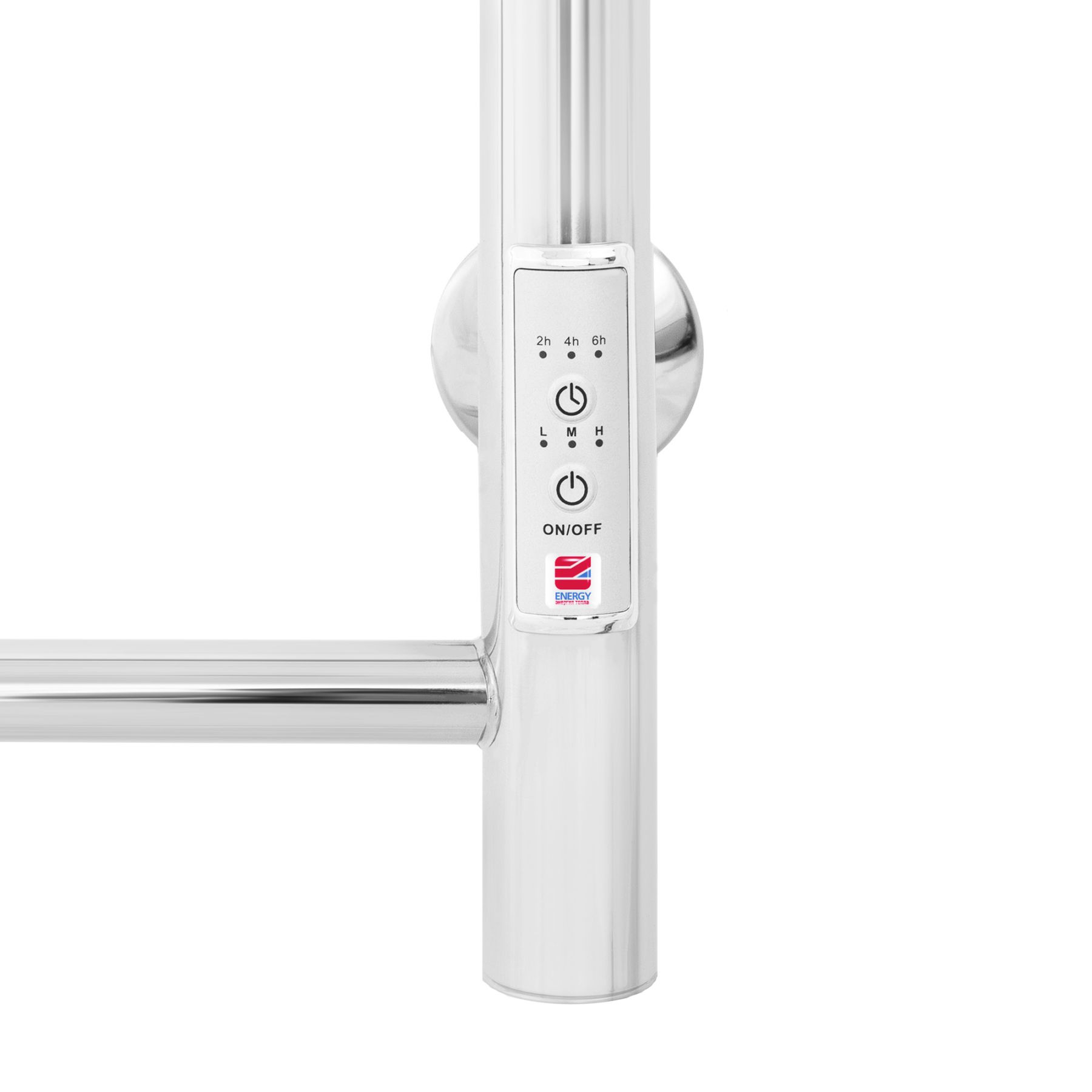 Energy Round Modus – электрический полотенцесушитель с терморегулятором и таймером, выполненный в форме классической лесенки с круглыми в сечении перемычками и полкой, увеличивающей полезную площадь прибора. Нагревается за счет безопасного греющего кабеля в изоляции.Полотенцесушитель оснащен блоком управления с удобной регулировкой мощности (60%, 80% и 100%), а также времени отключения (через 2, 4 или 6 часов). Благодаря невысокой мощности имеет низкий расход электроэнергии. Подключается скрытым или наружным способом.Характеристики: