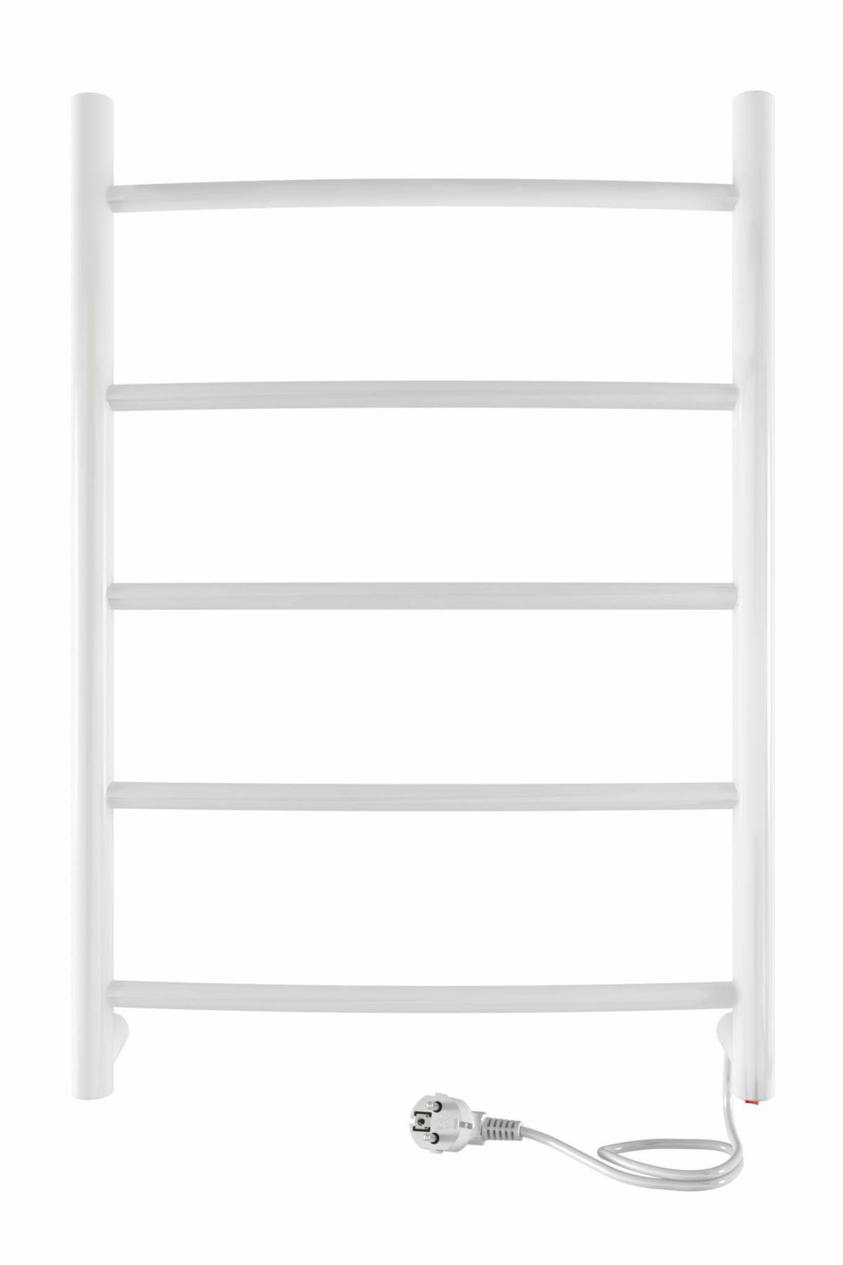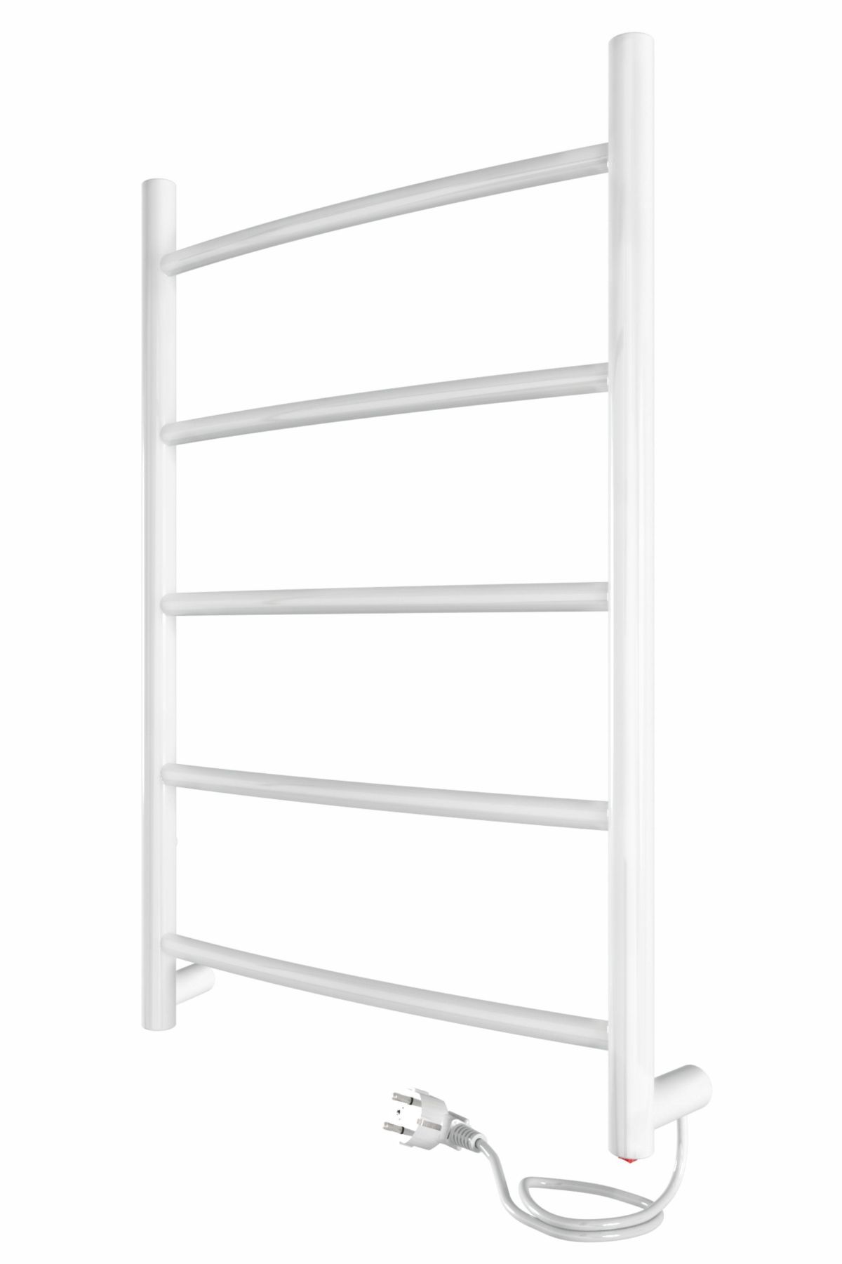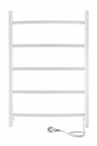 Электрический, энергосберегающий полотенцесушитель торговой марки INDIGO Arc с пятью дугообразными перекладинами и шириной 40 см. Витой шнур органично и аккуратно смотрится с полотенцесушителем. Кнопка вкл/выкл. находится на корпусе.