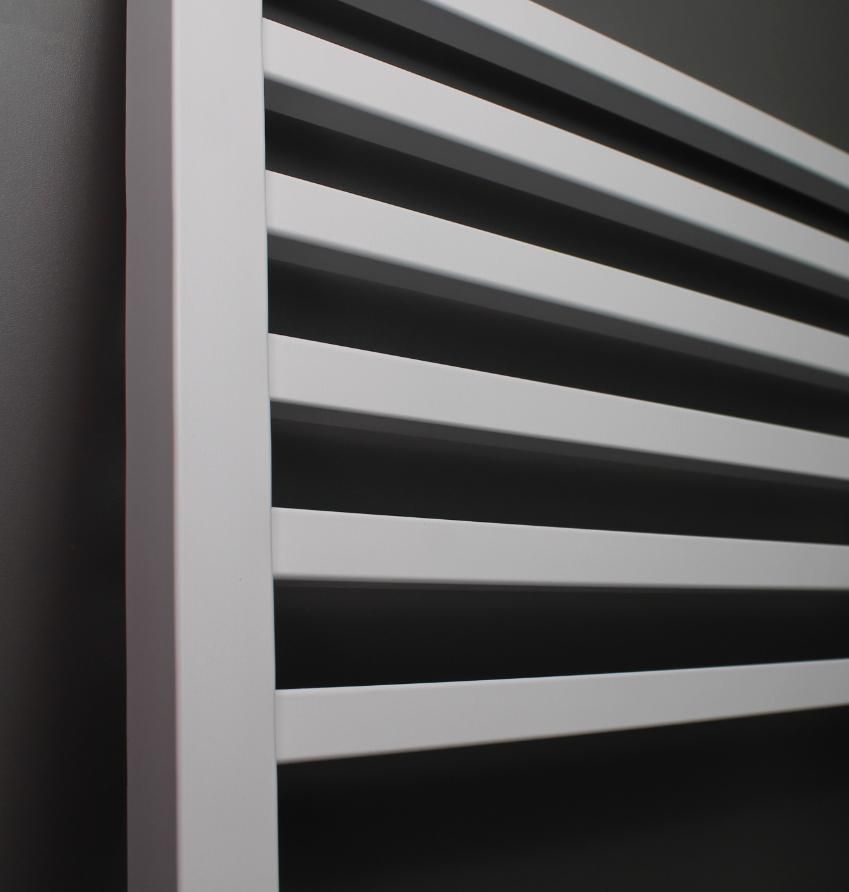 Полотенцесушитель INDIGO Attic из цветной линейки, выполнен в беловом матовом цвете. Выбирают данную модель за его вместительность и стильный вид, маленькие размеры имеют 10 перекладин а большие двенадцать, что позволяет быстрее высушить полотенце. А профильные перекладины делают эту модель более современной.