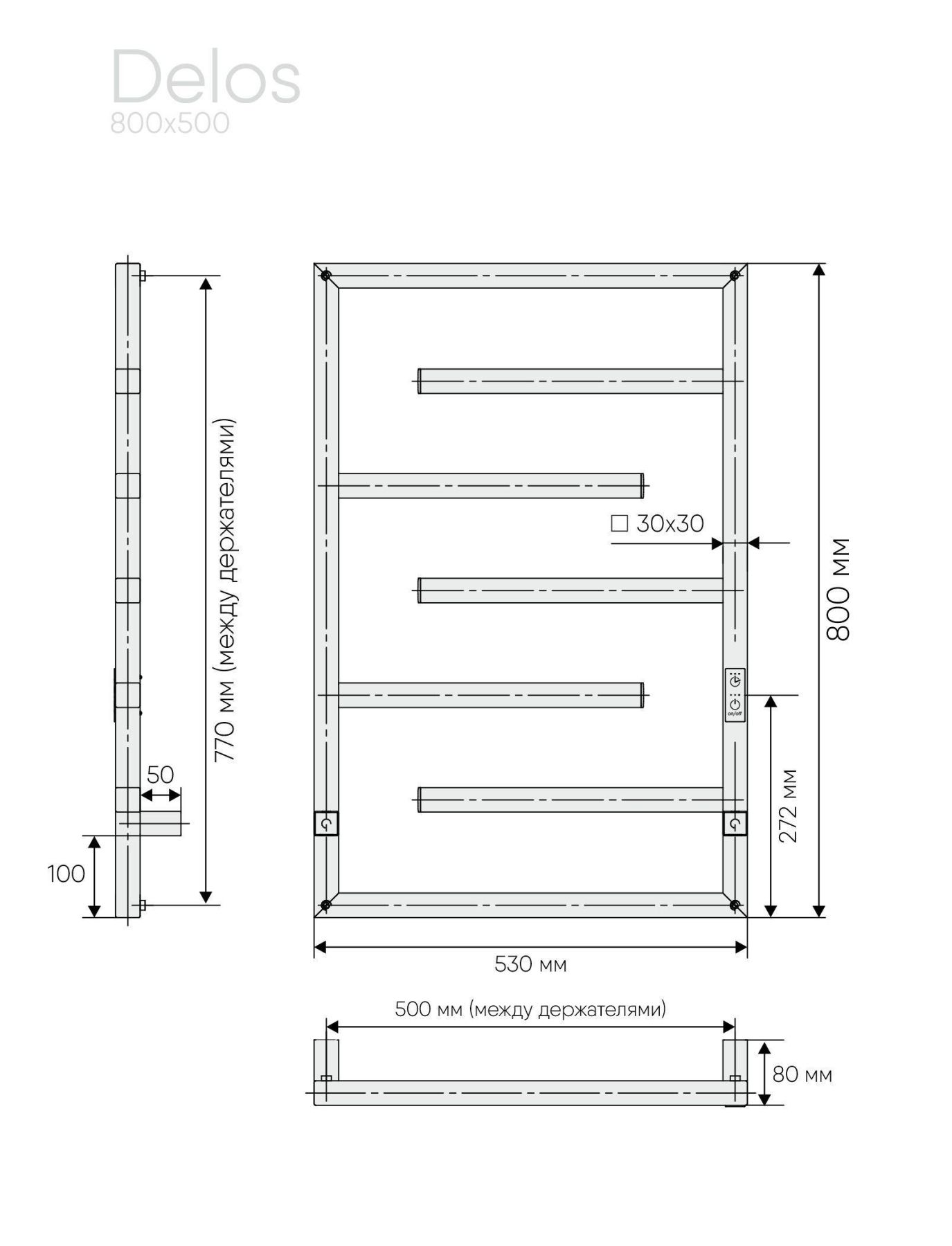 Полотенцесушитель электрический INDIGO Delos с встроенным терморегулятором нагрева (три температурных режима – 40, 45,50 градусов) и таймером на отключение через 2, 4, 6 часов. Универсальность изделия предусматривает подключение через прямой провод или скрытое подключение без покупки дополнительного переходника. Длина прямого провода 1,1 метра.