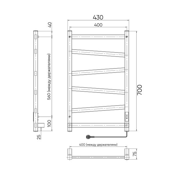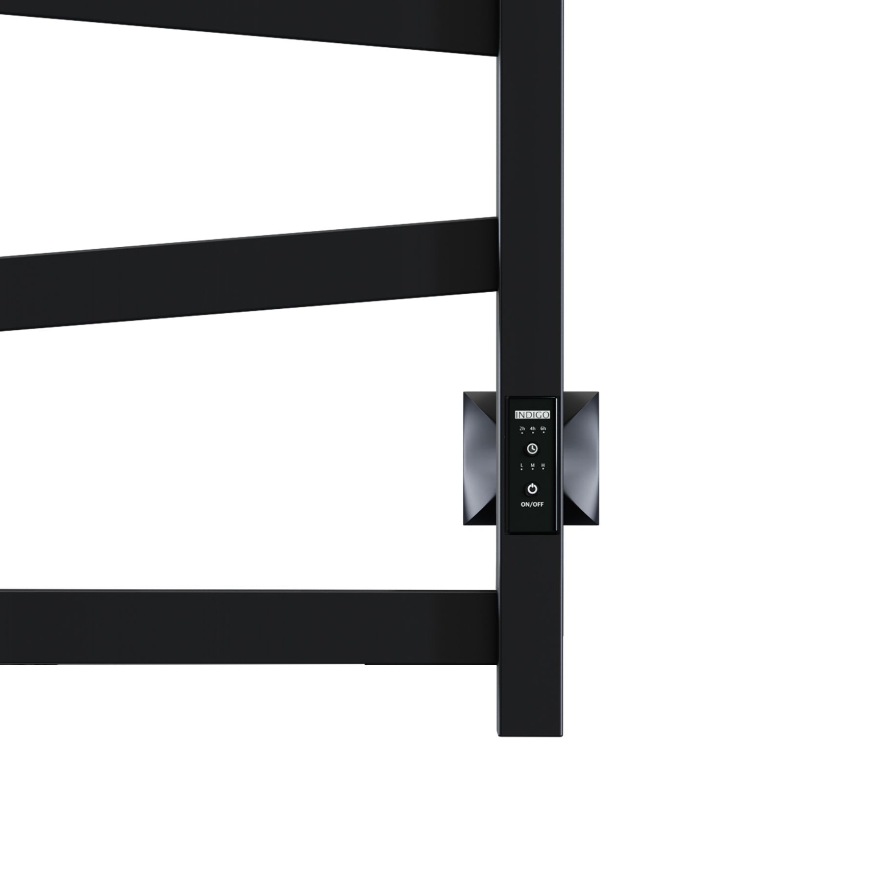Полотенцесушитель электрический INDIGO Element с терморегулятором и таймером в цвете «Черный Муар». Форма - дизайн-лесенка, позволяет сушить одновременно большое количество текстильных изделий. Электрический полотенцесушитель для ванной выполнен из профильной трубы, имеющей в сечении форму прямоугольника/квадрата.