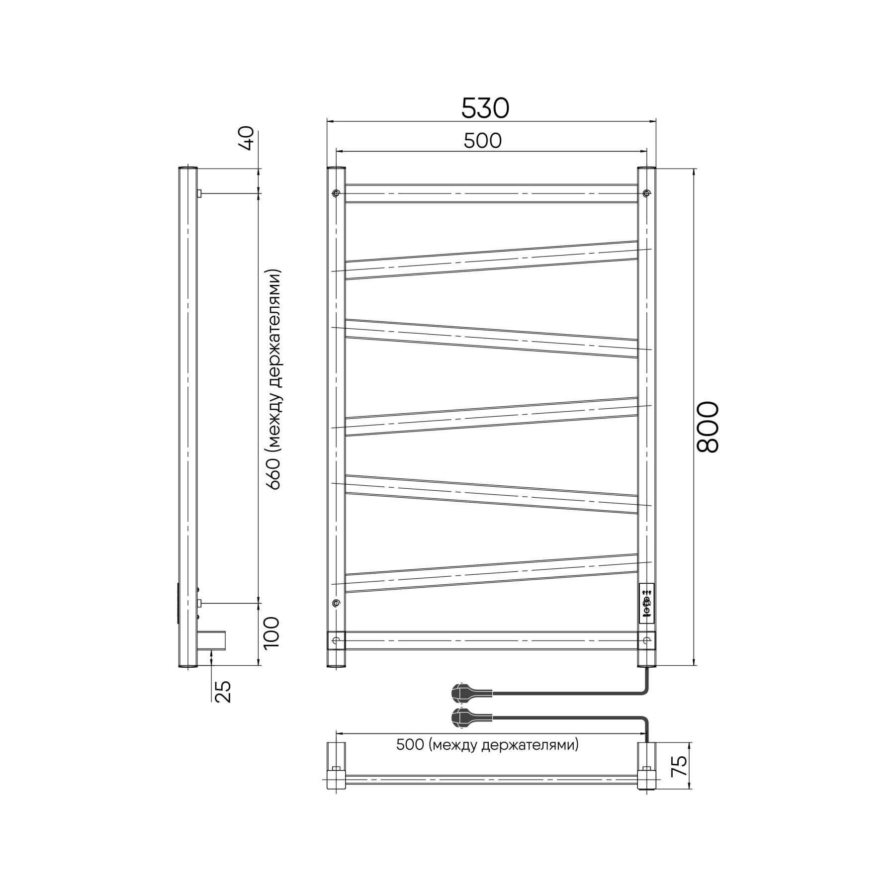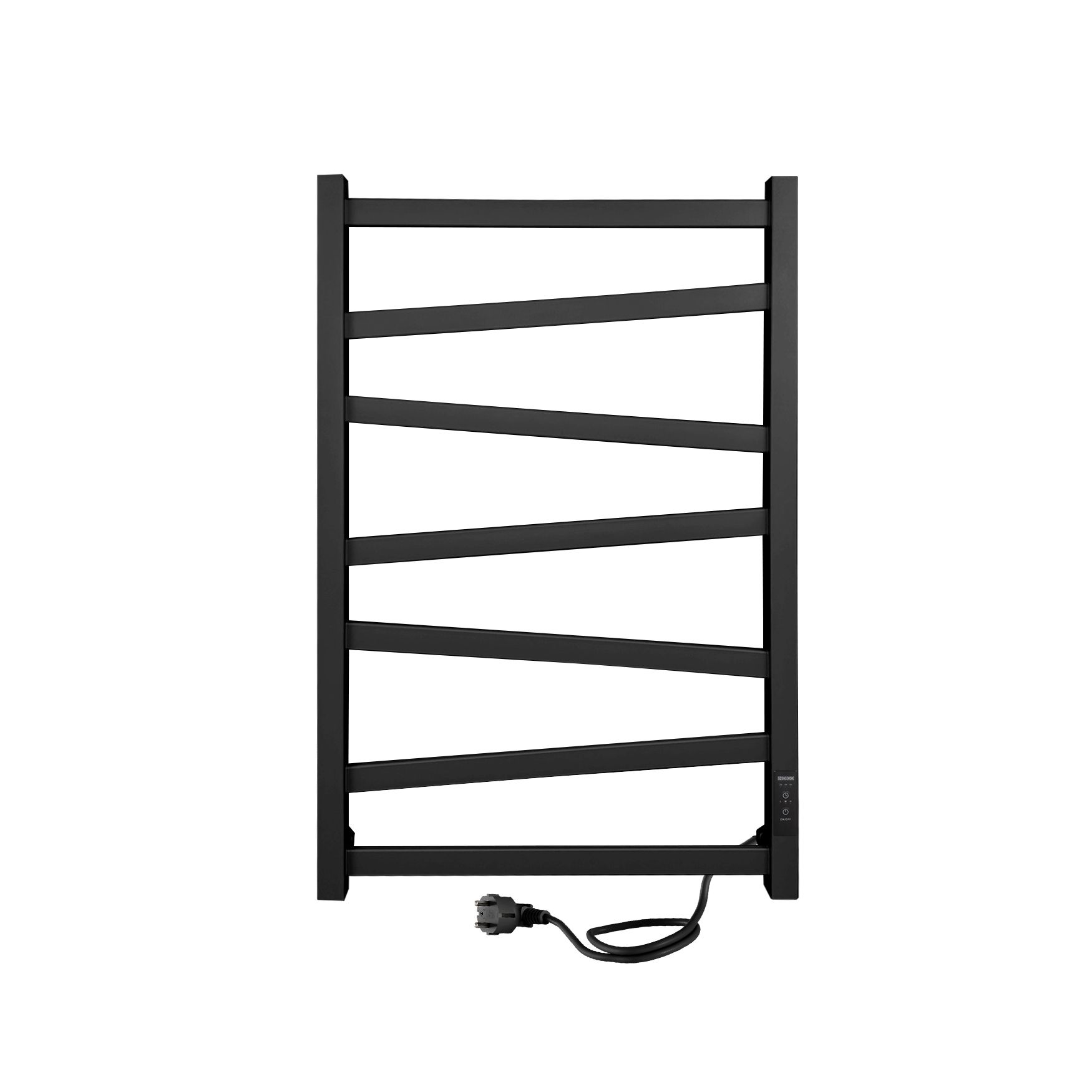Полотенцесушитель чёрный матовый окрашен безопасной порошковой краской по специальной технологии для придания дополнительной стойкости к повреждениям и устойчивости к воздействию воды и пара. Плюс данной окраски также в том, что на покрытии не остаются отпечатки и разводы, а значит чистота и аккуратный вид сохранится дольше. Благодаря строгим формам электрополотенцесушитель прекрасно впишется в интерьер душевой комнаты или ванной. Особенностью данной модели являются перекладины, расположенные под наклоном.