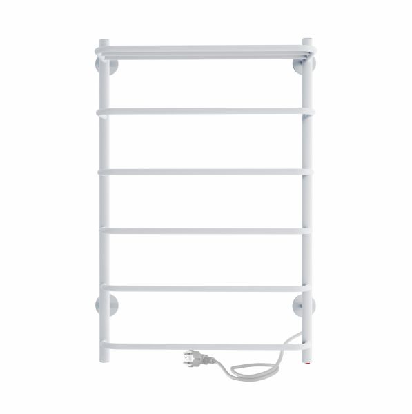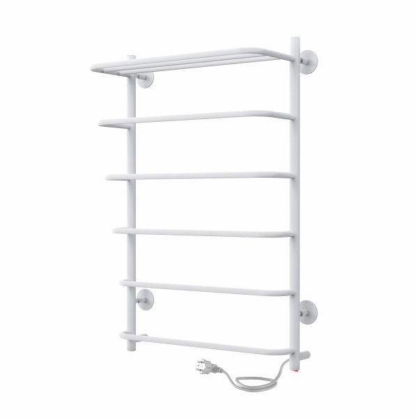 Полотенцесушитель электрический INDIGO в белом матовом оттенке. Пять перекладин и полка позволят разместить достаточное количество текстильных изделий на просушку. Электрические полотенцесушители имеют высокую тепловую эффективность, помогут избежать появление плесени в ванной комнате, обеспечат быструю сушку текстильных изделий вне зависимости от отопительного сезона.