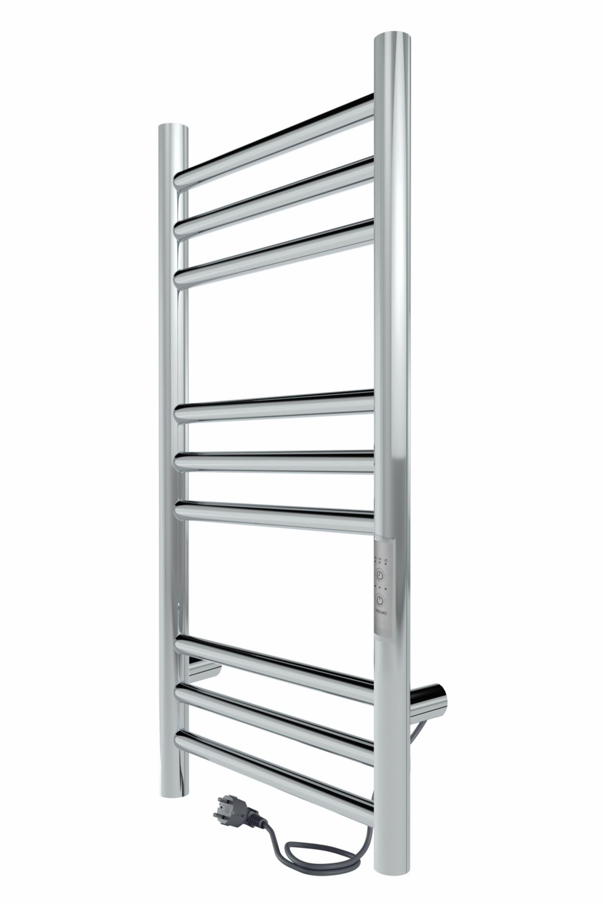 Модель имеет терморегулятор нагрева, у которого три режима: 40, 45, 50 градусов и таймер на отключение через 2, 4, 6 часов. Полотенцесушитель с терморегулятором удобен тем, что температуру можно настроить под себя и установить таймер по времени для самостоятельного выключения изделия.