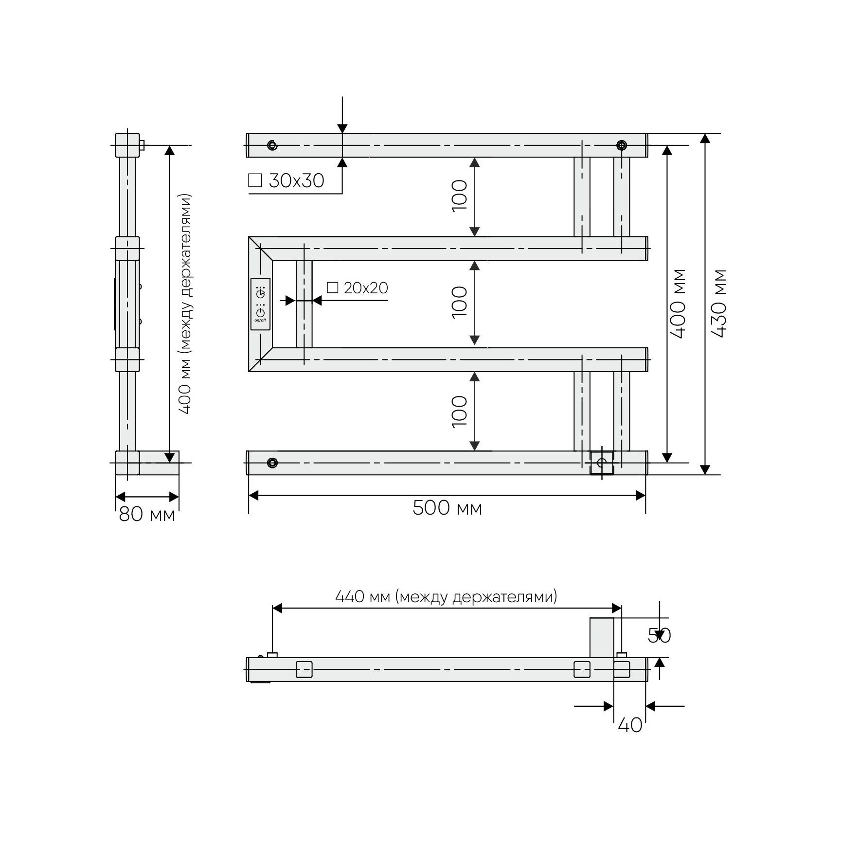 Полотенцесушитель электрический INDIGO Muza в размере 400х500 (ВхШ) выбирают за его технологичность и форму. Модель имеет терморегулятор нагрева, у которого три режима: 40, 45, 50 градусов и таймер на отключение через 2, 4, 6 часов. Подключение осуществляется двумя способами: скрытое подключение к электропроводке через модуль скрытого подключения в стену или прямым электропроводом. Длина прямого провода 1,1 метр. Изделие окрашено порошковой краской по специальной технологии. Полотенцесушитель относится к энергоэффективным изделиям, потребляемая мощность в данном размере 64 Вт. Специальная технология нагревательного кабеля защищает полотенцесушитель от перегрева, что влияет на длительные сроки службы. В комплектации идут 3 телескопических держателя, комплект монтажа и гарантийный паспорт. Полотенцесушитель INDIGO Muza застрахован и имеет гарантию 3 года.