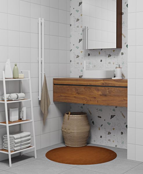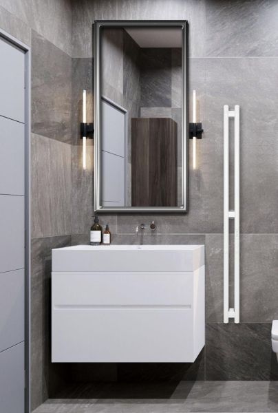 Выбирая данной полотенцесушитель белый матовый рекомендуем выбирать скрытый монтаж, для более лаконичного дизайна ванной комнаты. Белый цвет полотенцесушителя подходит к светлым ванным комнатам, а также гармонично сочетается с интерьером, где присутствует бытовая техника белых оттенков.