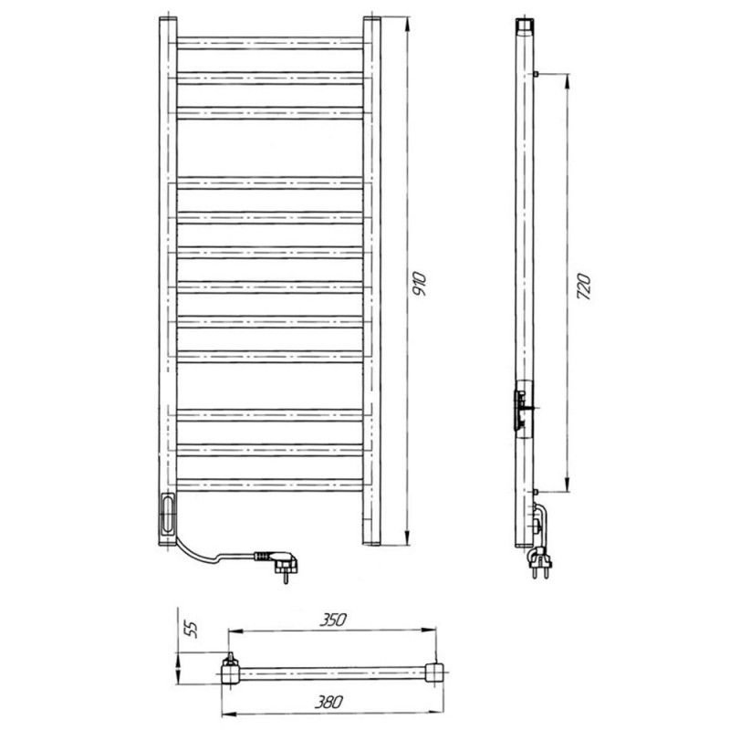 Электрический полотенцесушитель Laris Астор ЧКЧ12 350х900 L 73207664.Характеристики:Цвет: черный муар.