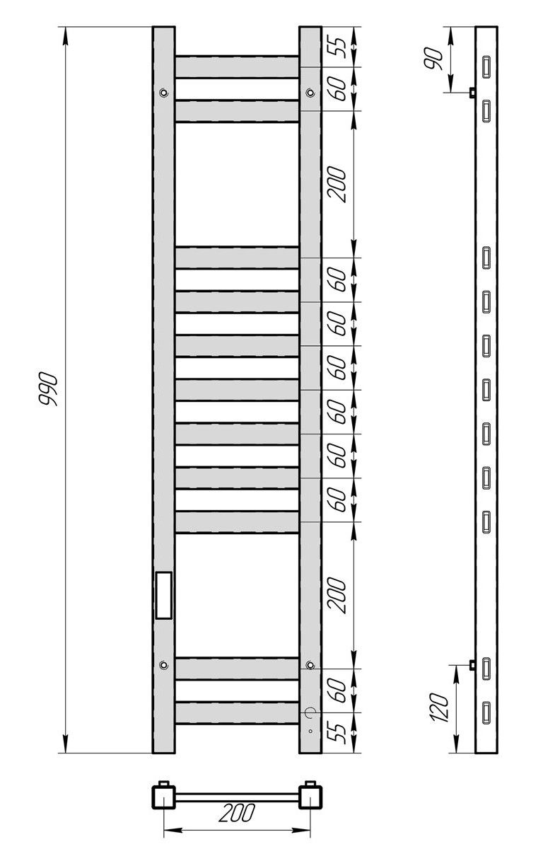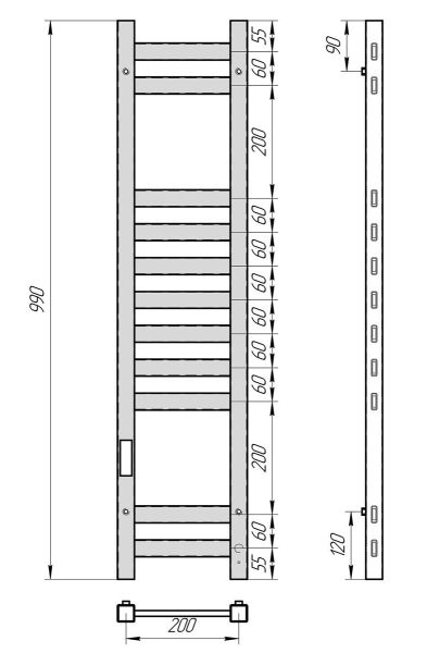 Полотенцесушитель электрический Laris Флавиа 73207656 левый П11 20x100см чёрный муар купить