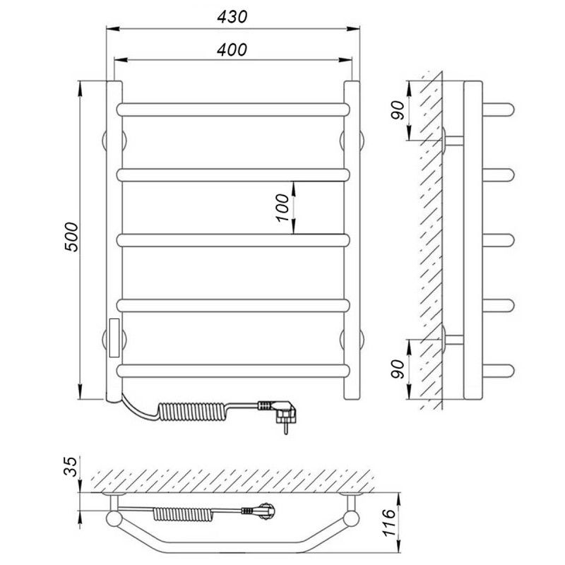 Модель: ВикторияКод товара: 73207636Материал: сталь нержавеющая AISI304Диаметры и толщина: стойка Ø32, толщина 1,5 мм; перемычка Ø20, толщина 1,5 ммРегулятор: на стойке (программируемый регулятор с таймером)Терморегулятор: даТаймер: даВозможность скрытого монтажа: да (приобретается отдельно)Размещение шнура: слева (Также есть исполнение с правым подключением)Температура поверхности изделия*: 50±5°CНапряжение питания: 220 ВВес: 4 кгКомплектация: