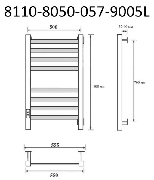 Полотенцесушитель электрический Маргроид В81/10 Р80*50 чёрный матовый 8110-8050-1081-9005L купить