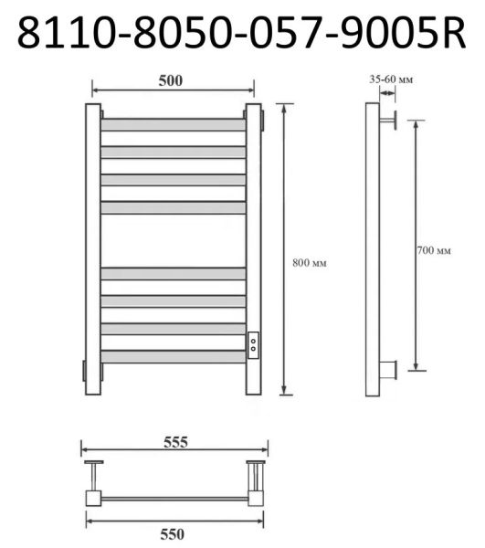 Полотенцесушитель электрический Маргроид В81/10 Р80*50 чёрный матовый 8110-8050-1081-9005R купить