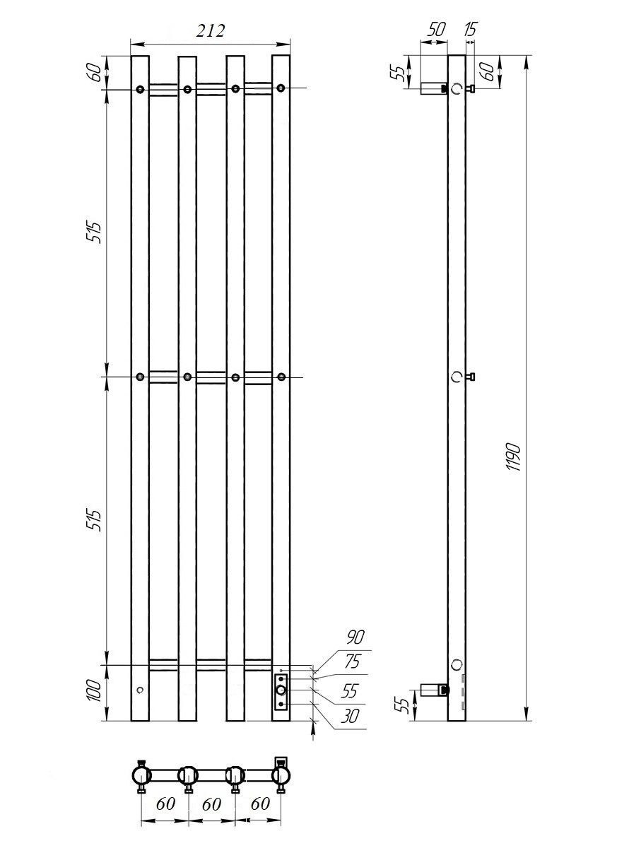Полотенцесушитель электрический Point Деметра PN12832W П3 180x1200 диммер справа, белыйКомплектацияПолотенцесушитель - 1 шт,кронштейны для крепления к стене - 3 шт,сетевой кабель - 1 шт,комплект скрытого подключения - 1 шт,паспорт/гарантийный талон - 1 шт