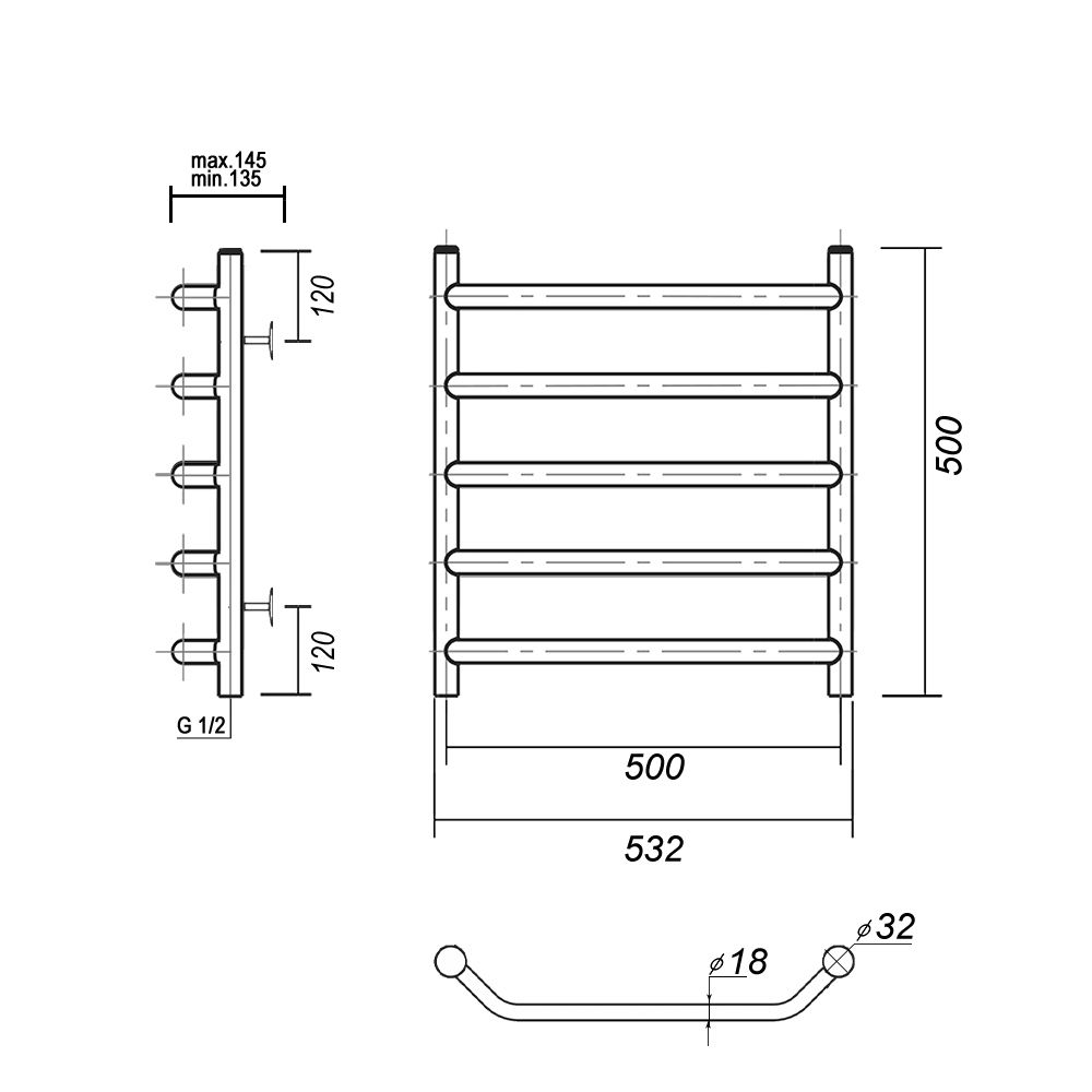 М/о расстояние (межосевое расстояние): 500Количество перекладин: 5Коллекция: ЛаураТип: водяныеЦвет: хромШирина (мм): 532Высота (мм): 500Глубина (мм): 145/135Вес: 4,04Объем: 0,045Страна: РоссияГарантия: 10 лет