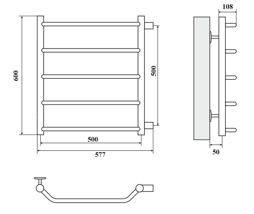М/о расстояние (межосевое расстояние): 500Количество перекладин: 5Коллекция: ЛаураТип: водяныеЦвет: хромШирина (мм): 577Высота (мм): 600Глубина (мм): 135-145Вес: 3,9Объем: 0,0478Тэн/подключение: боковоеСтрана: РоссияГарантия: 10 лет