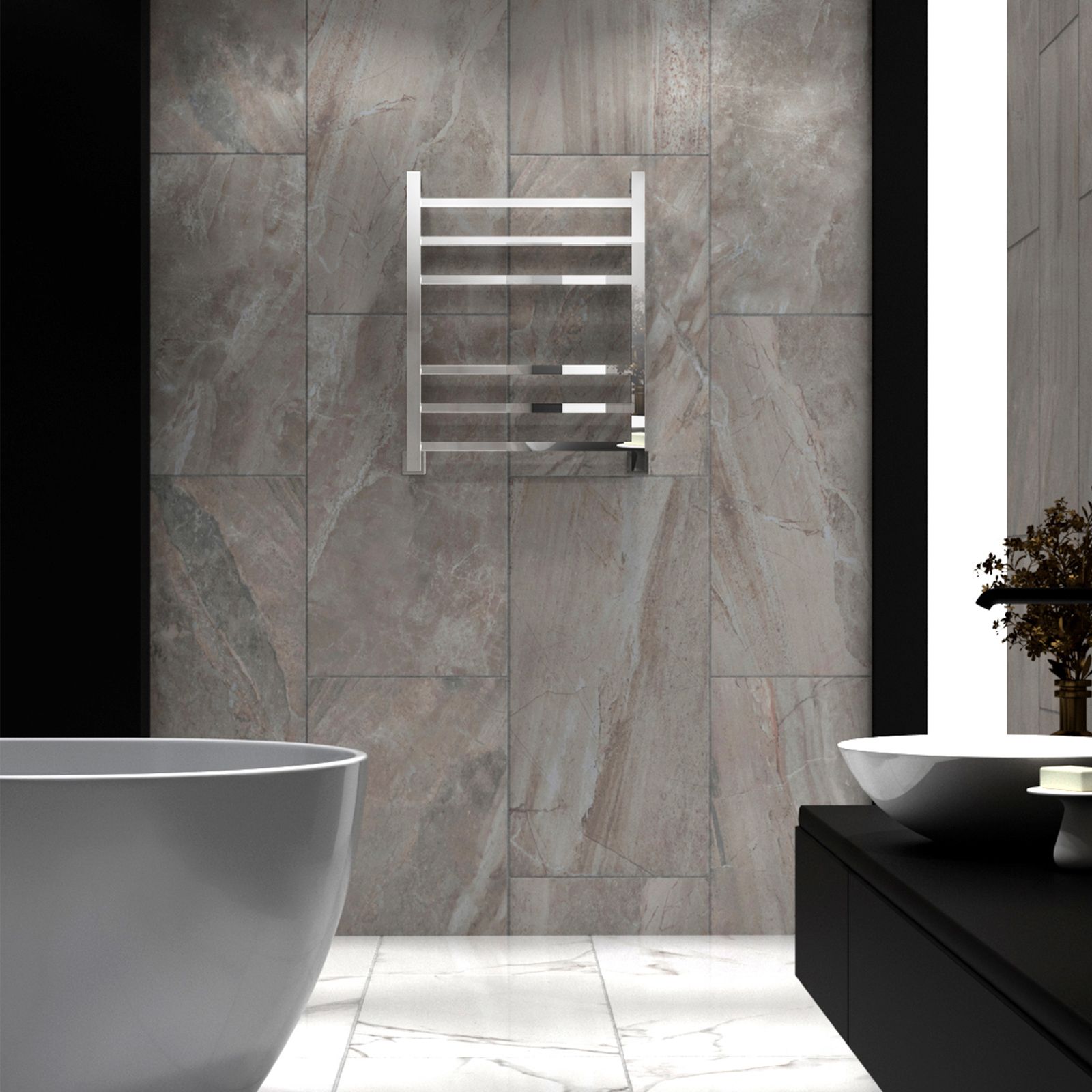 Изделие имеет возможность как нижнего, так и бокового и диагонального подключения за счет особенной конструкции полотенцесушителя.