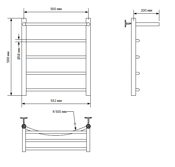 Полотенцесушитель имеет дугообразные перекладины, что очень удобно при эксплуатации.