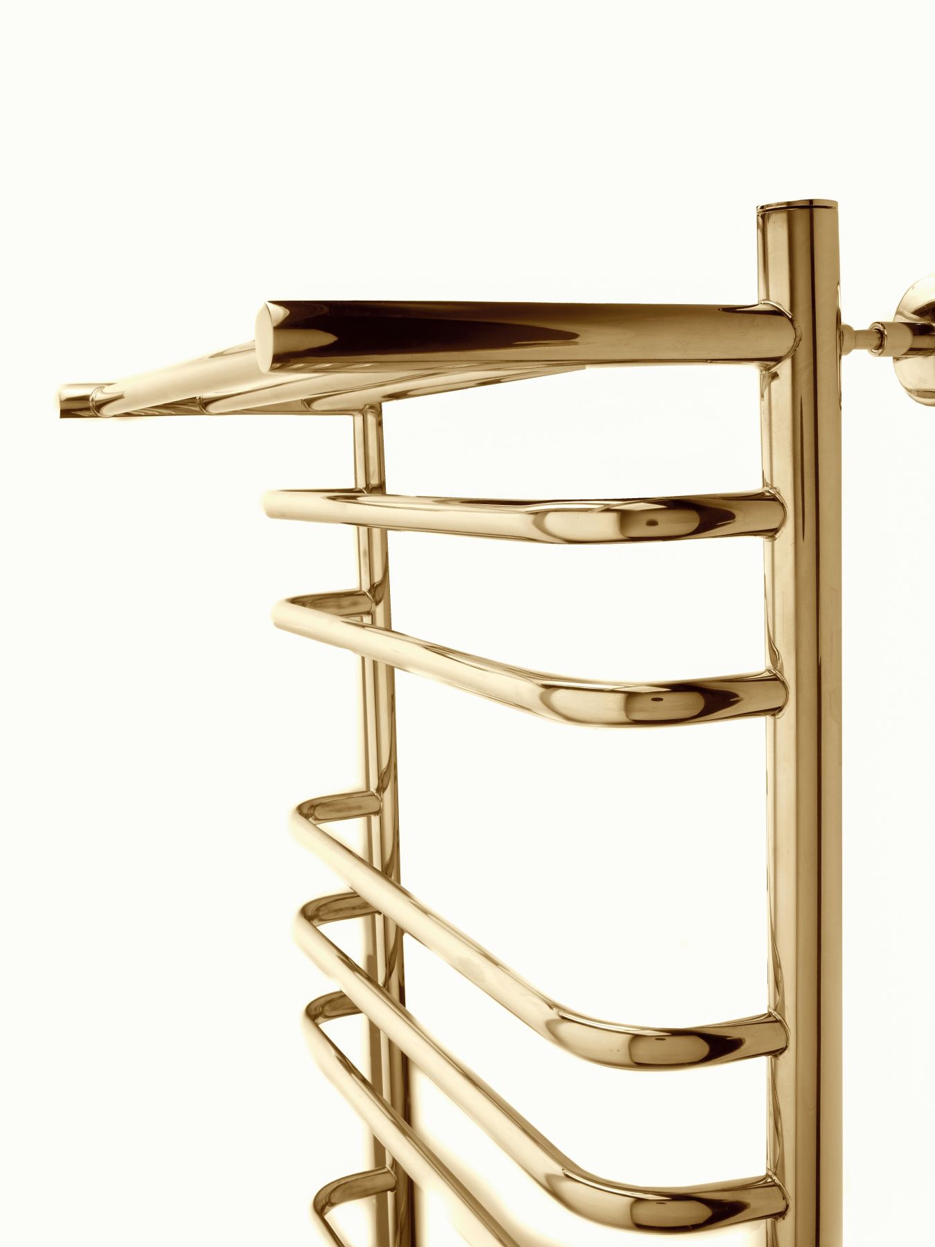 Полотенцесушитель Brace с полкой выполнен в цвете «Золото». Удобен в использовании. Большое количество перекладин позволяет сушить достаточное количество изделий. Водяные полотенцесушители для ванной хорошо справляются со своей задачей, они предотвращают повышенную влажность в ванной комнате и предотвращают появление плесени и грибка.