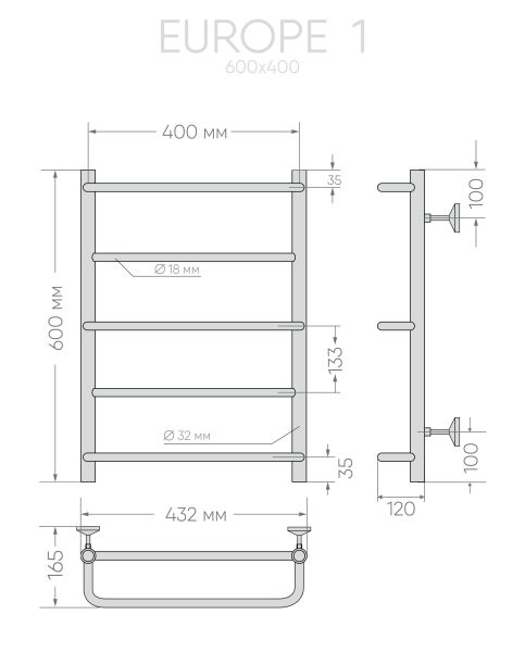 Полотенцесушитель водяной INDIGO Europe1 в классическом виде «лесенка» удобен для размещения большого количества текстильных изделий на расстоянии друг от друга.
