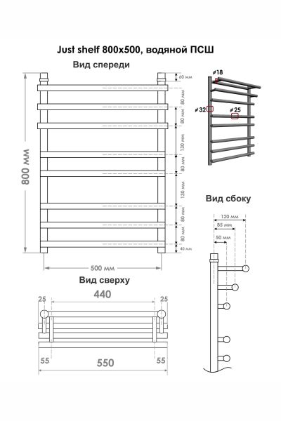 Полотенцесушитель водяной INDIGO Just Shelf с каскадным расположением перекладин. Многофункциональное изделие, отлично справится с сушкой текстильных изделий и с предотвращением появления плесени и повышенной влажности.