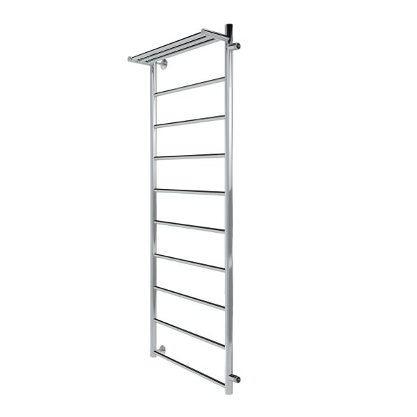 Водяной полотенцесушитель в форме Лесенки Line с полочкой – это оригинальная модель с прямыми перекладинами с дополнительной полкой для полотенец, халатов и других мелочей. Полотенцесушитель марки INDIGO выполнен из нержавеющей стали.