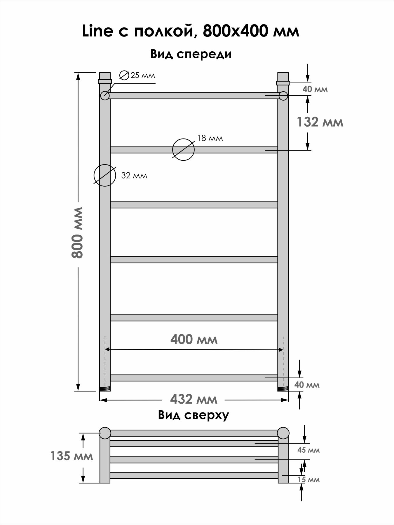 Стильную полированную поверхность изделию обеспечивает этап электрохимическая полировка. Изделие с небольшим количеством перекладин, но со своей основной задачей справляется: сушит текстильные изделия, предотвращает повышенную влажность и появление плесени в помещении.
