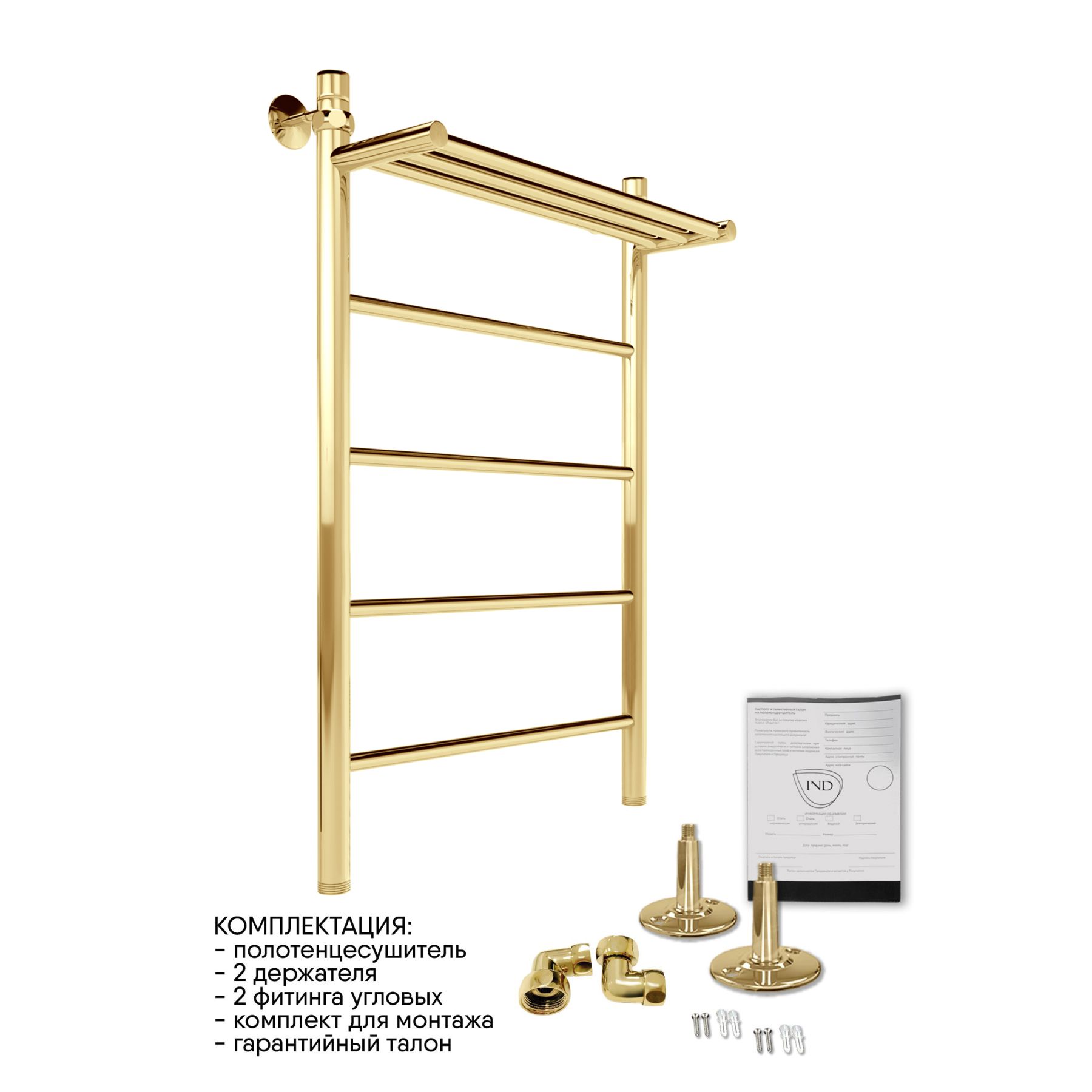 Полотенцесушитель водяной Indigo Line LLSHW80-50GDPK3 с полкой 80x50 см золото купить