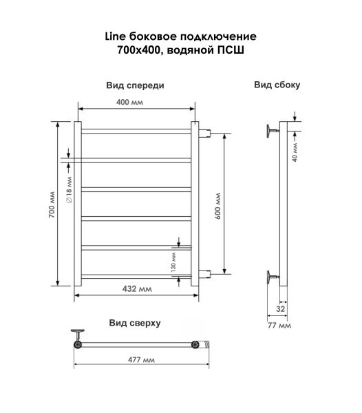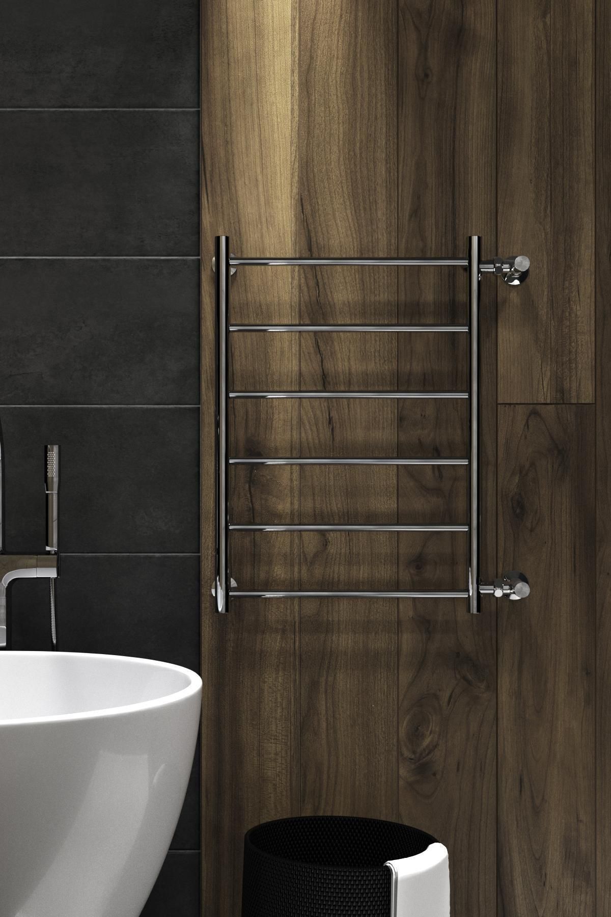 Водяной полотенцесушитель серии «Лесенка» Line с боковым подключением имеет большое количество перекладин, что удобно для сушки большого количества текстильных изделий. Изделие выпускается в нескольких размерах для удобства подбора в ванную комнату индивидуально. Простой, но стильный и изысканный сушитель изготовлен из высококачественной нержавеющей стали марки AISI 304, к тому же комплектуется держателями, колпачками и системой воздухоотводчиков. «Лесенка» имеет хорошую теплоотдачу и предотвращает появление плесени в ванной комнате.