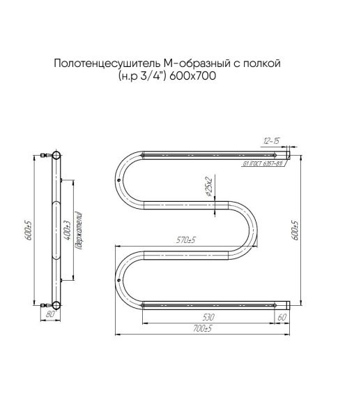 Полотенцесушитель водяной INDIGO M – образный с полочкой. Простая, но при этом универсальная модель отлично впишется в небольшую ванную комнату. Модель изготовлена из высококачественной нержавеющей стали. Не подвергается воздействию ржавчины и коррозии. Полочка удобна для дополнительного хранения и использования полотенец для рук.