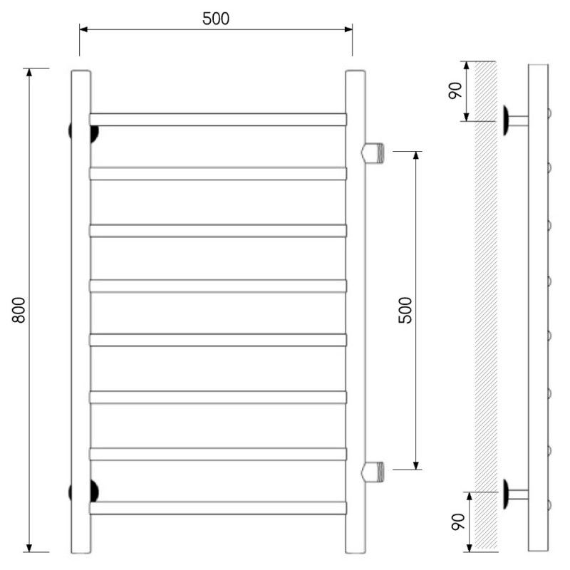 Модель: КлассикКод товара: 73208007Материал: сталь нержавеющая AISI304Цвет: хромРезьба: 1" внешняяПодключение: боковое левое и правое (поворот на 180 градусов)Диаметры и толщина: стойка Ø32, толщина 2 мм; перемычка Ø20, толщина 1,5 ммРабочая жидкость: вода техническая, антифриз, маслоПараметры теплоносителя: рекомендуемое давление до 1,5 МПа; температура до 100 ° СВес: 5,2 кгКомплектация: