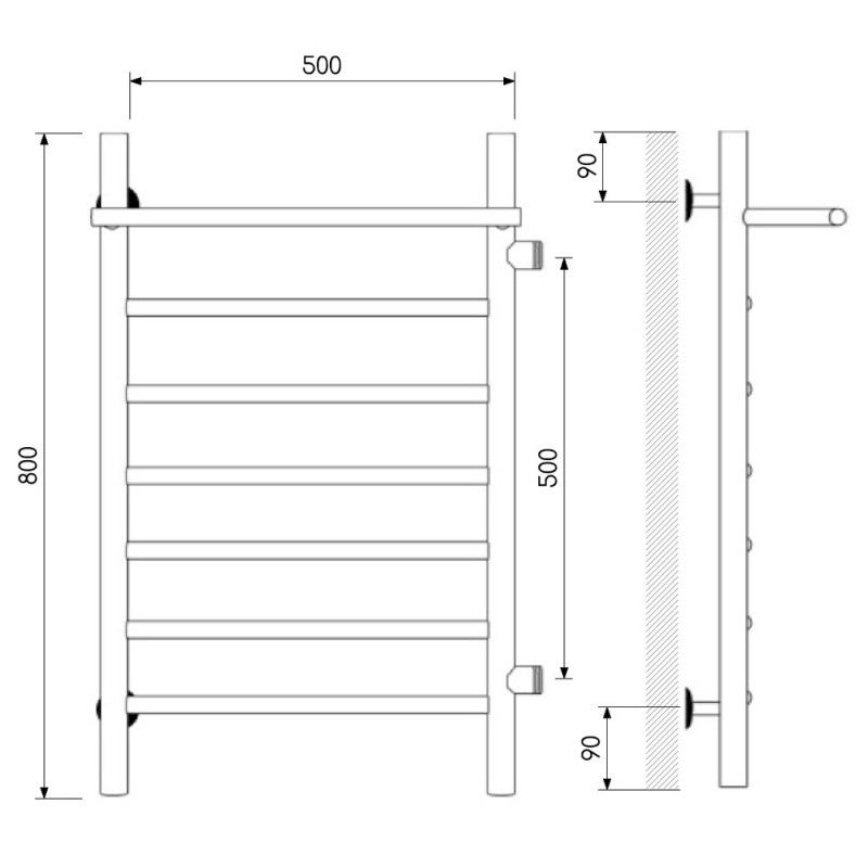 Модель: КлассикКод товара: 73208026БММатериал: сталь нержавеющая AISI304Цвет: RAL 9016 белый матовый муарРезьба: 1" внешняяПодключение: правое боковоеДиаметры и толщина: стойка Ø32, толщина 2 мм; перемычка Ø20, толщина 1,5 ммРабочая жидкость: вода техническая, антифриз, маслоПараметры теплоносителя: рекомендуемое давление до 1,5 МПа; температура до 100 ° СВес: 6,1 кгКомплектация: