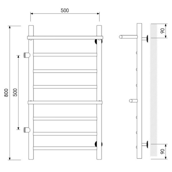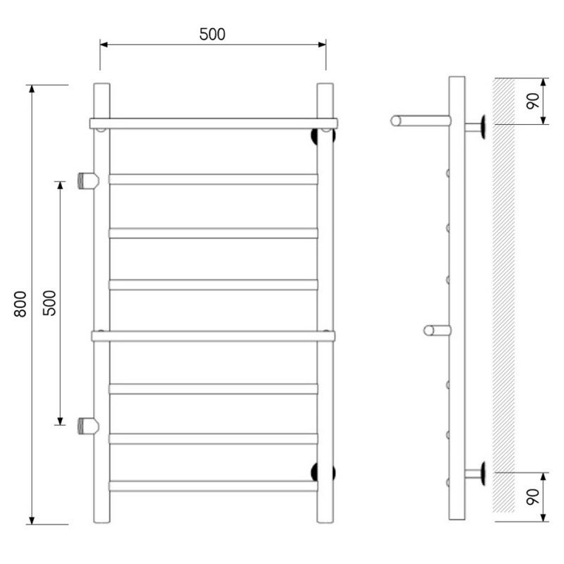 Полотенцесушитель водяной Laris Лавина 73208028ЧМ левый с полками П9 50x80см чёрный матовый купить