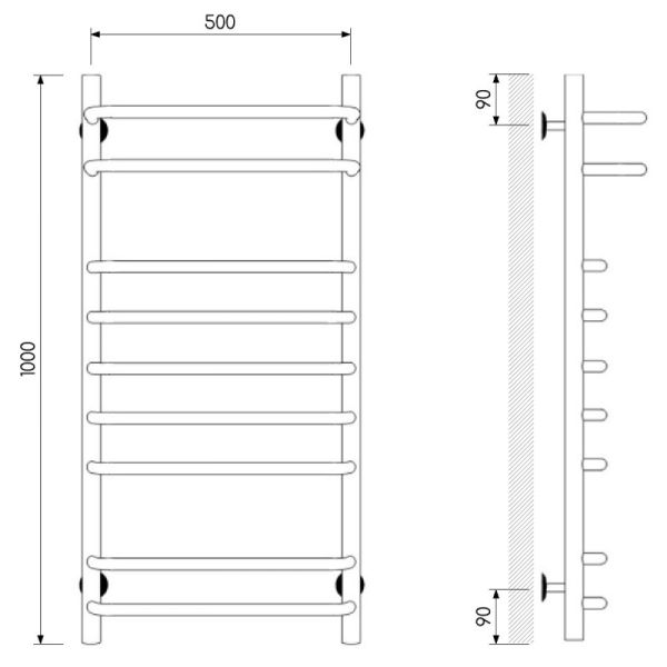 Полотенцесушитель водяной Laris Стандарт 73208013ЧМ с полкой П9 50x100см чёрный матовый купить