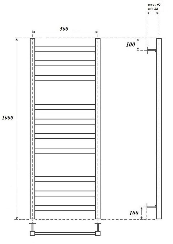 Полотенцесушитель водяной Point PN83150B П10 500x1000, черныйКомплектация:полотенцесушитель - 1 шт,кронштейны для крепления к стене - 4 шт,кран Маевского - 1 шт,заглушка декоративная - 1 шт,паспорт/гарантийный талон - 1 шт
