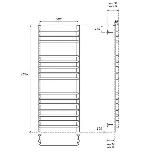 Полотенцесушитель водяной Point PN09150S П15 500x1000, хром