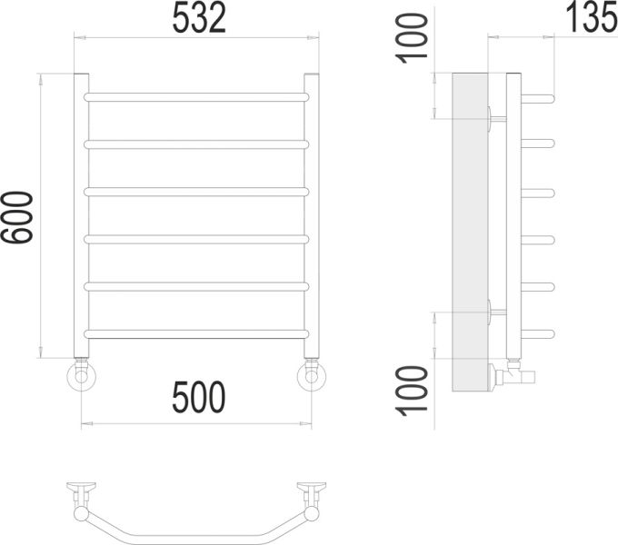 Полотенцесушитель водяной Terminus Виктория П6 500х600, ширина 53.2 см, высота 60 см, 4670078530080