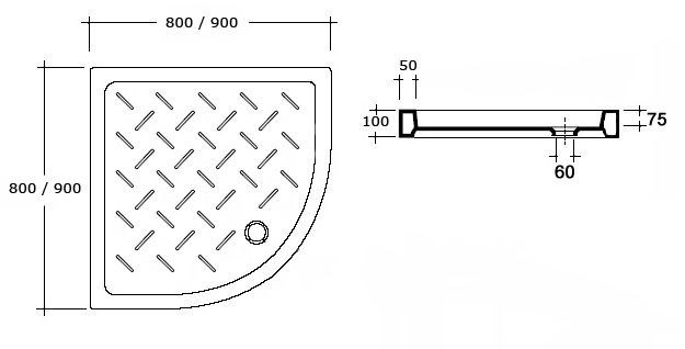 Полукруглый керамический поддон