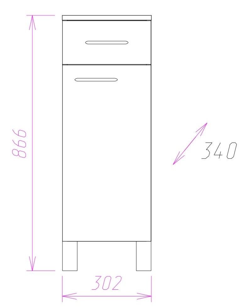 Напольный полупенал для ванной комнаты Onika КАПРИЗ 30, благодаря простому минималистичному дизайну, белой глянцевой поверхности, подойдет под любой интерьер ванной комнаты.