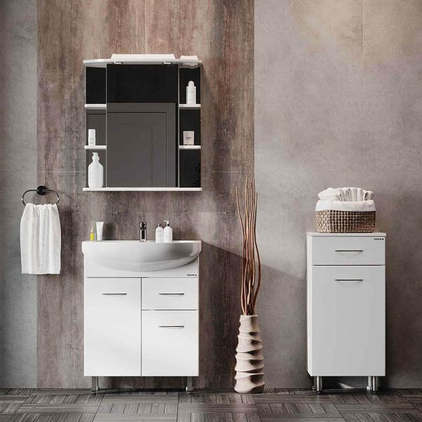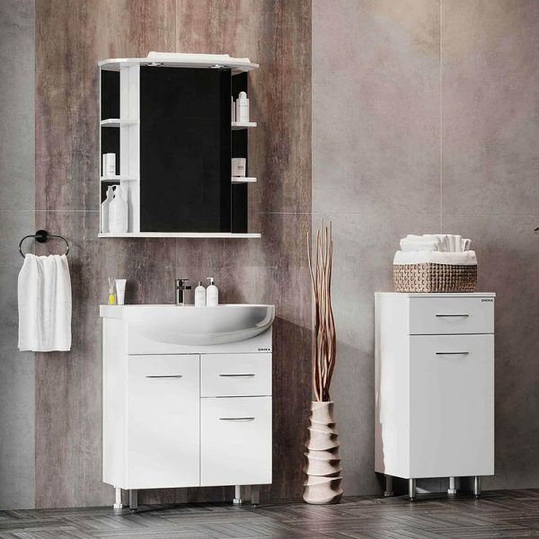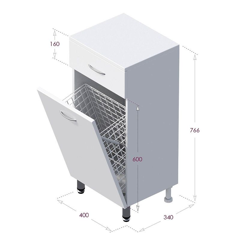 Напольный полупенал для ванной комнаты с корзиной для белья Onika КАПРИЗ 40, благодаря простому минималистичному дизайну и белой глянцевой поверхности, подойдет под любой интерьер ванной комнаты.